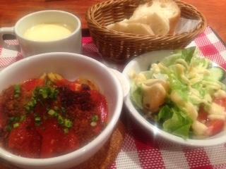 今週からの週替わりランチは魚のパン粉焼きピリ辛トマトソースです。