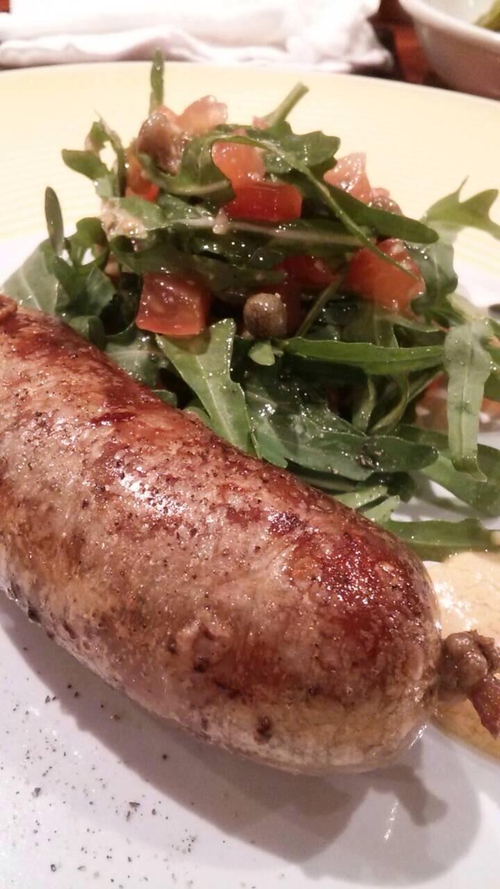 上質な牛ロースのステーキと自家製のバゲットに赤ワインのソースがたっぷりかかって、付け合せのフライドポテトと絶にマッチ‼️