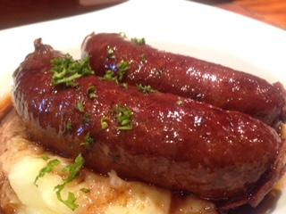 合わせるのはしっかりとした味わいのある自家製チョリソーソーセージの赤ワインソースで。
