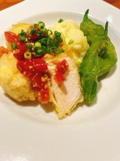 今週からの週替わりランチは鶏胸肉のベニエトマトベルジュソースです